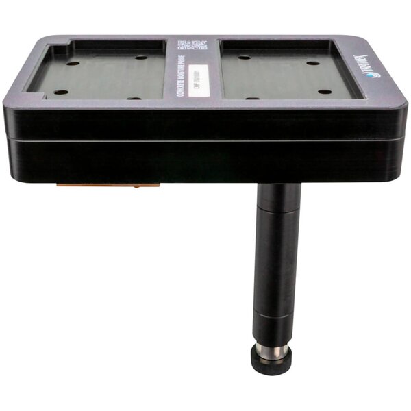 The Determinator cradle should be flat on the slab surface and the Tramex Concrete Moisture Meter placed and firmly pressed onto the cradle with the pins fully compressed. The probe reads from the bottom, within the body of the slab, up to the surface.