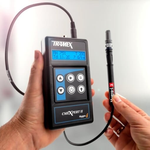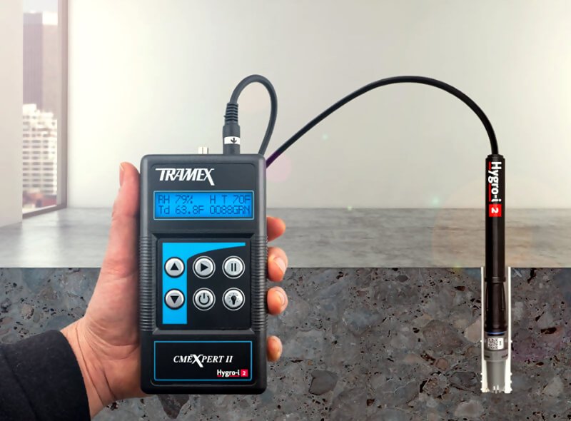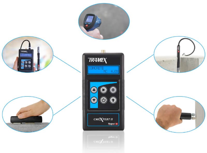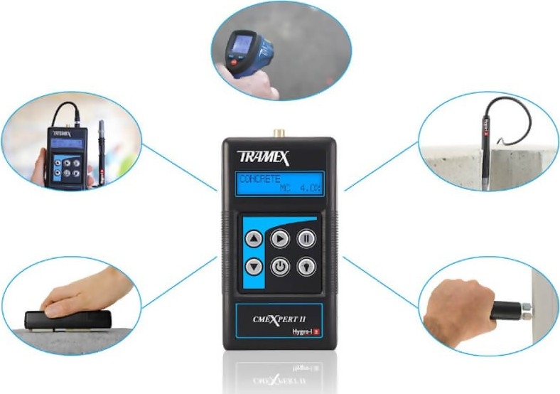 The Tramex CMEX2 CMEXpert II Concrete Moisture Encounter Expert is designed for the instant and precise measurement of moisture content in concrete and other floors and screeds. Incorporating plug-in ports for the optional Hygro-i ® relative humidity probe and heavy-duty pin-type wood probe, this moisture meter transforms into the ideal all-in-one instrument for the flooring professional.