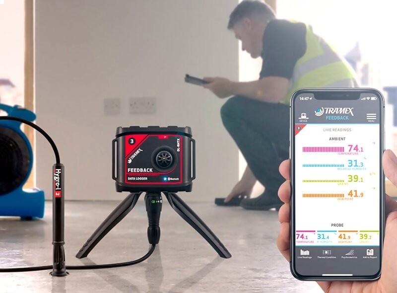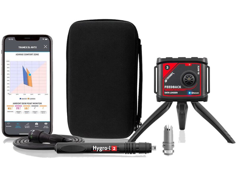 The Tramex FBSK5.1 Feedback Datalogger Starter Kit has been designed and developed by Tramex for professionals who depend on accurate, reliable readings using the very best, state of the art technology and performing ASTM F2170. The Feedback DataLogger and App log up to 100,000 data point entries for relative humidity, temperature, dew point and grains per pound, transmitted wirelessly via Bluetooth BLE technology to your mobile device. On the App you can visualize Live Readings, Thermal Conditions and Psychrometric Charts, as well as creating and exporting spreadsheets, charts and reports. The Tramex Feedback DataLogger requires the Tramex Feedback Data Logger App and a compatible iOS or Android mobile device.