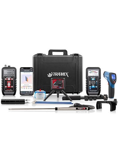 The TREMS-Xtra comprises a TRAMEX Cloud Station, 5 CS-RHTX Tramex Cloud Sensors for ambient conditions, and 5 external Relative Humidity probes. These external probes extend the benefits of the remote monitoring system allowing for use with the Tramex Hygrohood as well as for in-situ readings within building structures cavities in walls and ceilings and in situ RH readings in concrete.