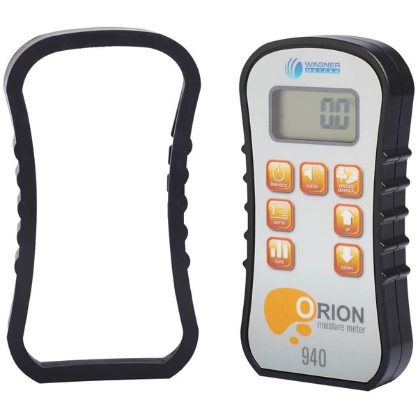 The Wagner Orion® 940 Data Collection Pinless Wood Moisture Meter Kit features the Orion 940 meter, designed for measurement of moisture content from the surface down to .25” (6.4mm) or .75” (19mm) deep inside wood or other materials. The Wagner Orion 940 Moisture Meter also features data collection and storage capabilities vital to Quality Control and home or property restoration applications.