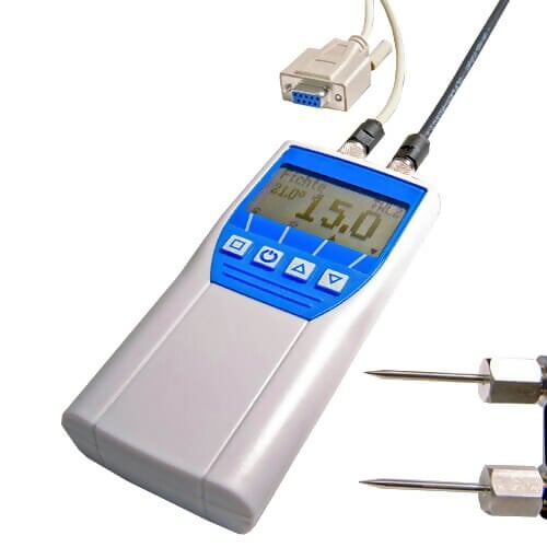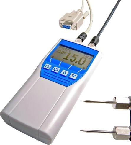 With ram electrode and spare pins for measurements op to 60mm depth