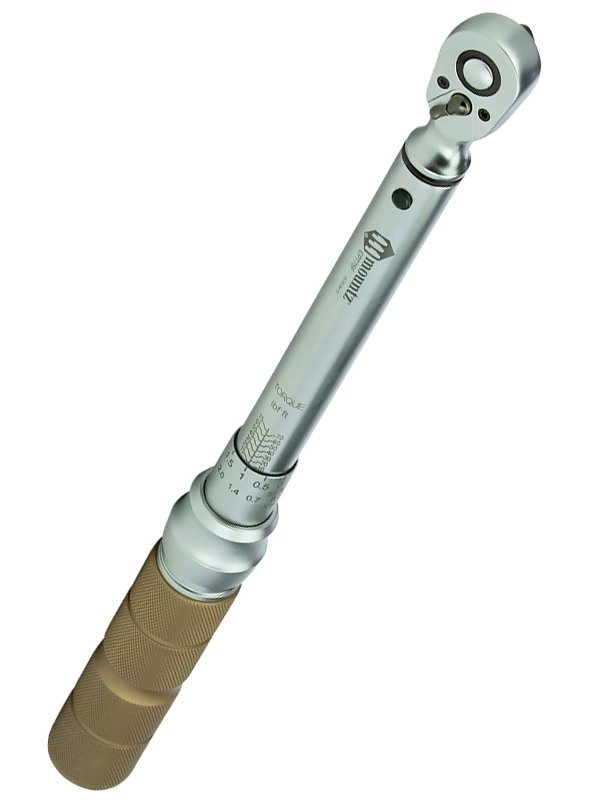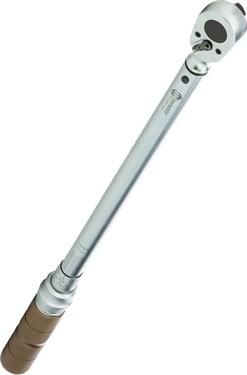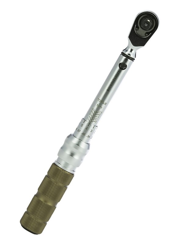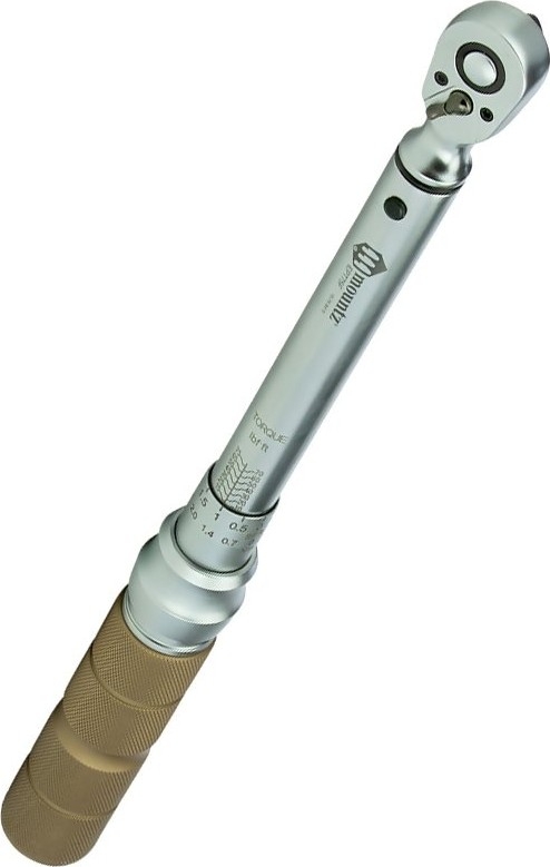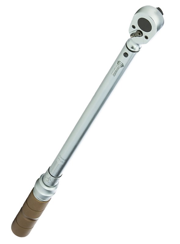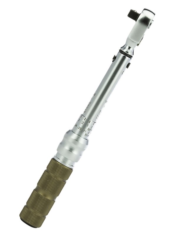 - Adjustable torque wrench with a square drive. Bi-directional ratchet head.