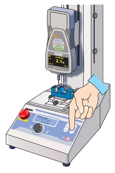 Force controlled non-destructive tests are also easy to setup and program. Connect an Imada Z Series force gauge to the MX2 test stand to enable the following force controlled tests and Conditional Overload Prevention.