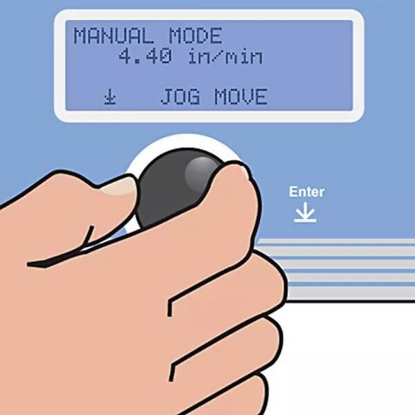 MX2 features a unique jog movement control, for precise increment testing. In jog mode, each click of the program dial moves the cross head approximately .015mm for MX2-110, .01mm for MX2-275 and .05mm for MX2-550 (standard speed, under no load).