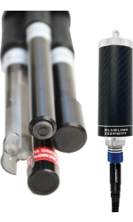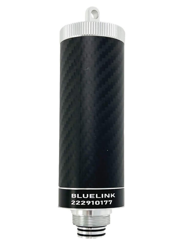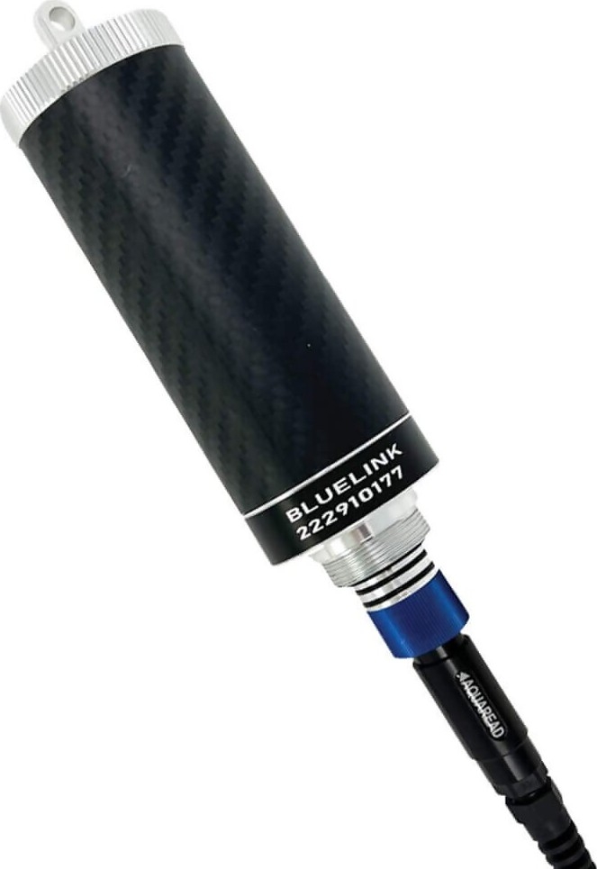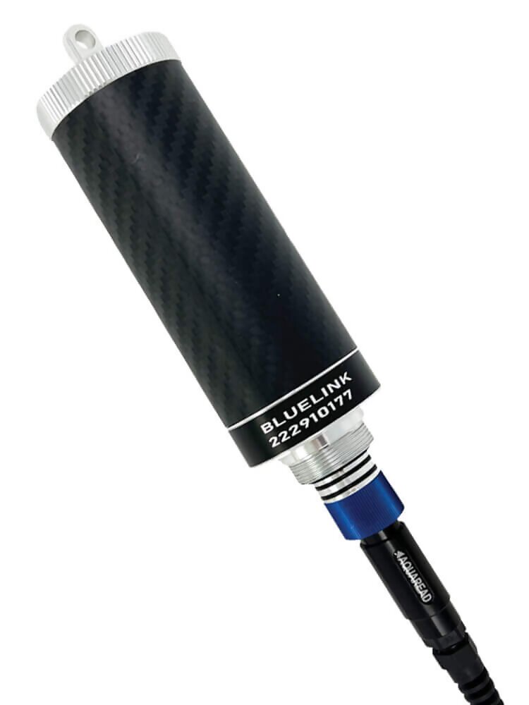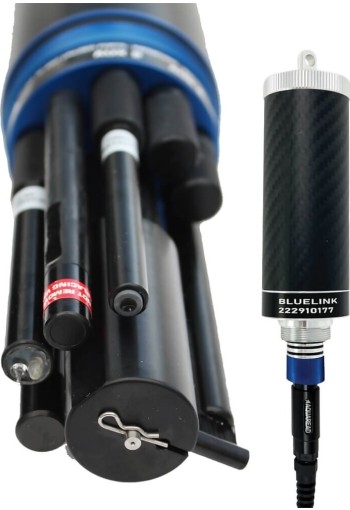 The NKE Bluelink Bluetooth Water Quality Monitoring Adapter is made from aluminum and carbon fiber and houses a rechargeable battery. The unit also features a barometric pressure sensor for live compensation of the dissolved oxygen and depth measurements.