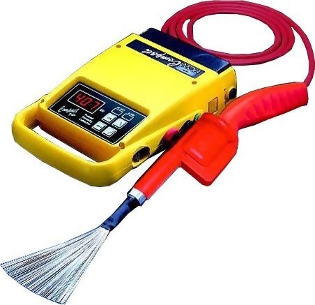 Used for detection of Coating Porosity (Pin-holes, or Holidays) in dielectric (insulation type) coatings on conductive substrates, including Concrete. Suitable for Production Pipeline Coating operations, Tank-Work and Structures. Ideal for use on Storage Tanks, Valves and Pipelines.