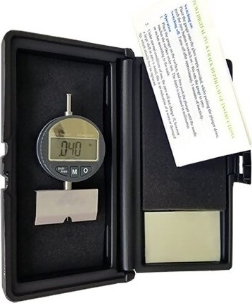 The PCWI Pit & Crack Depth Gauge Kit includes gauge, carrying case, glass mirror sample, mini allen wrench, spare battery and instructions