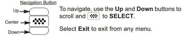Gage functions are menu controlled. To access the Menu, power-up the Gage, then press the center