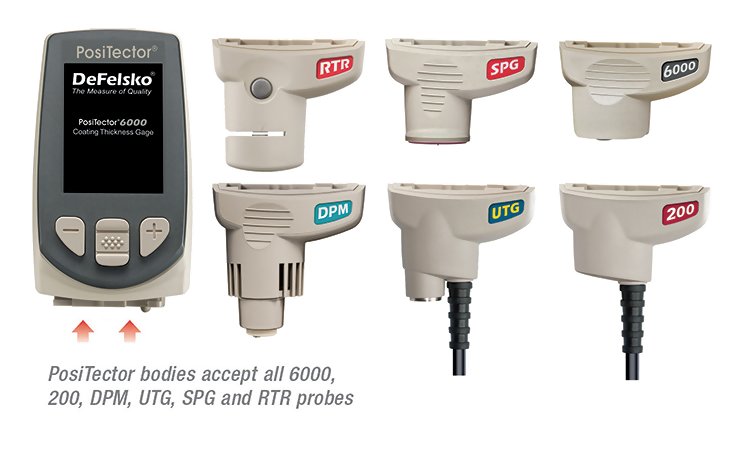 PosiTector body accepts all 200, 6000, SPG, RTR, DPM and UTG probes.