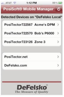 - Once your smart device/computer has been connected to the PosiTector Access Point, open the PosiSoft Mobile Manager app. Select your PosiTector from the list to open PosiSoft Mobile.