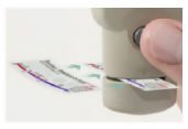 - Clean the measurement anvils using the cleaning card.
