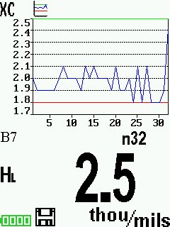 - The surface profile height (HL)?measurement is immediately displayed. ?The tape can now be removed. ?An hour glass will display while peak density (Pd) and the associated 2D/3D images are being generated.
