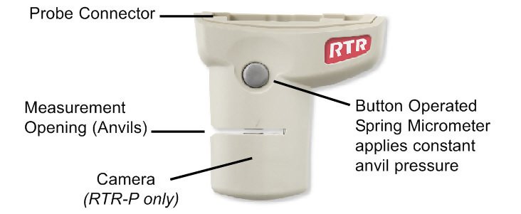 The PosiTector Replica Tape Reader (RTR) is a hand-held electronic instrument that measures burnished Testex Press-O-FilmTM replica tape to produce peak-to- valley surface profile height measurements. It consists of a body (Standard or Advanced) and probe (RTR-H or RTR-P).