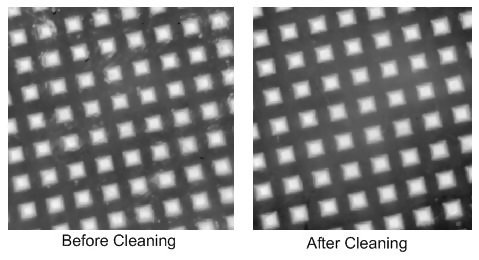 Example of a 2D surface image taken with a PosiTector RTR-P Advanced before and after cleaning the anvils with the cleaning card.