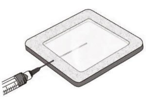 - Pierce the top of the patch at the foam perimeter, allowing the needle to penetrate into the center of the patch.