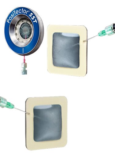 The Bresle Method DeFelsko PosiPatch further simplifies the Bresle method. It requires no adhesive, as it is held to a steel surface by a magnetic holding ring. It has a built-in port which allows deionized (DI) water to be injected using a dull polypropylene dispensing tube, eliminating sharp needles from the test. It features a patented air-permeable membrane, which automatically releases trapped air as DI water is injected, then allows air bubbles to return and agitate the surface as solution is withdrawn. It is also reusable, and a single PosiPatch can be used for multiple tests.