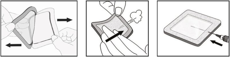 - Slowly inject 3.0ml of DI water into the port using the plastic dispensing tip. The air within the PosiPatch automatically escapes through the air-permeable membrane.