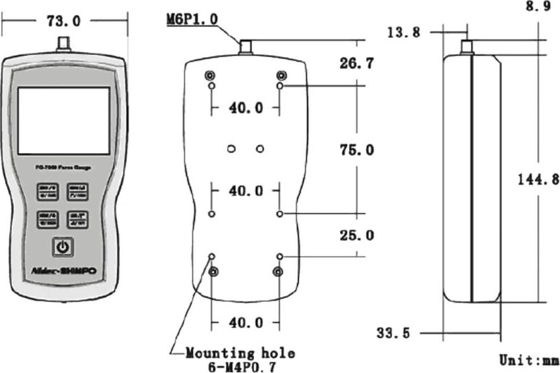 Shimpo FG-7000 Digital Force Gauge - Dimensions