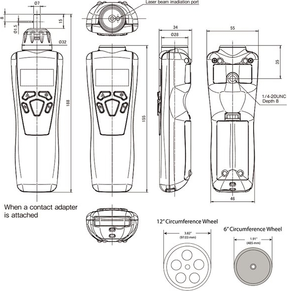 Accessories Included2 cone adapters, 1 funnel adapter, 3-1/2" extension shaft, 1 surface speed wheel (6" circumference), carrying case, operating instructions