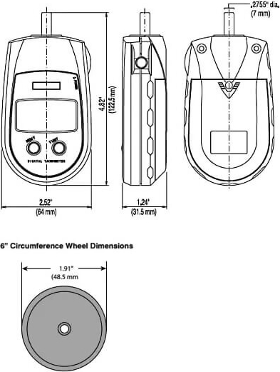 • Multiple measurement types: total revolutions (rev); revolutions per minute (rpm); surface speed: m/min, y/min, in/min, ft/min; and length: meters, yards, feet and inches