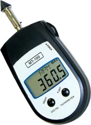 The Shimpo MT-100 Contact Pocket Tachometers with microprocessor technology possesses the precision of the standard SHIMPO Tachometer line, yet within a compact, pocket-style enclosure. The MT-100 provides users with the capabilities of measuring and recording speeds of rotational, linear and surface plus total length. These battery-operated tachometers feature the same rugged, high quality components that have made SHIMPO tachometers the benchmark in the industry. The user-friendly, value-packed units feature memory storage; quick selection unit’s button; length functions; retrieval of last, maximum and minimum values; plus each unit comes standard with a free N.I.S.T. calibration certificate. Each unit ships in a protective carrying case which includes a cone adapter, funnel adapter and 6” circumference wheel