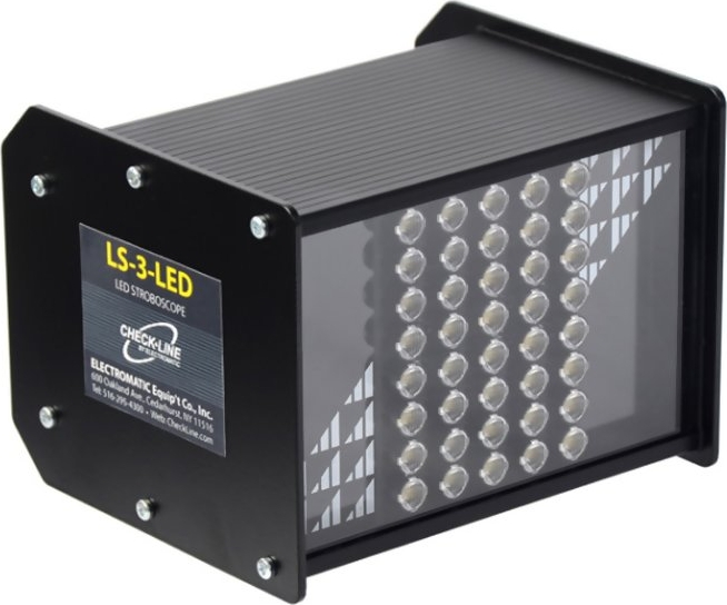 The Checkline LS-3-LED is a high-performance LED stroboscope designed for inspection of webs up to 10"/25cm. Built-in strobe control allows for easy adjustment of flash rate, brightness, phase and more. External input allows syncing the strobe with a remote sensor.
