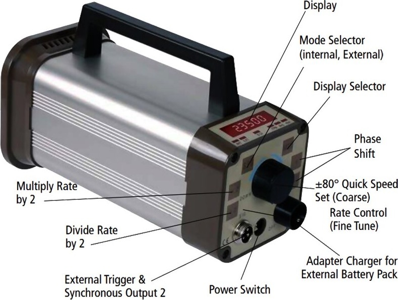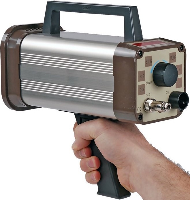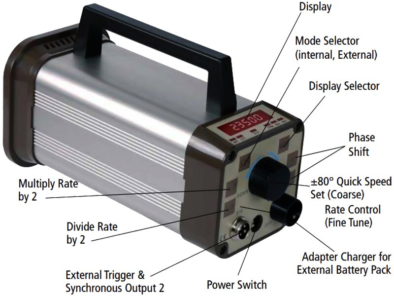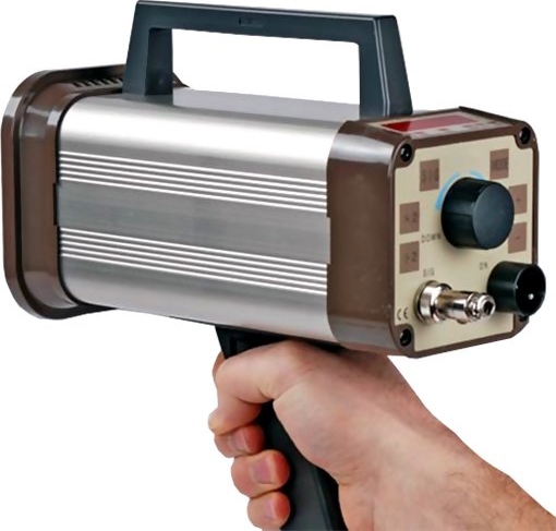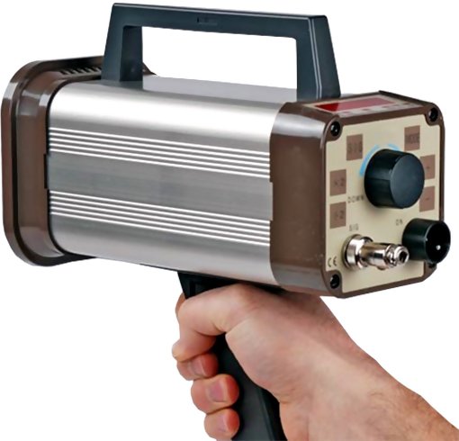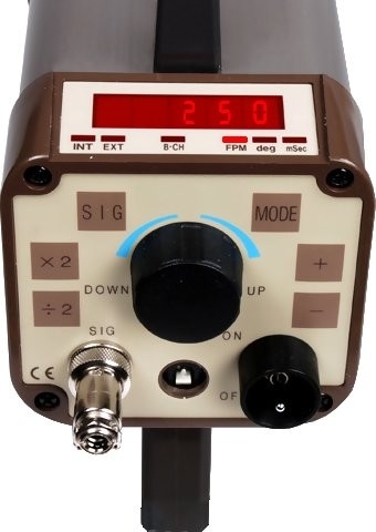 The Shimpo DT-315A Digital Stroboscope is a portable, highly stable and accurate, industrial-quality tools for non-contact RPM measurement, inspection and observation of moving parts by "freezing" or "slowing down" the action