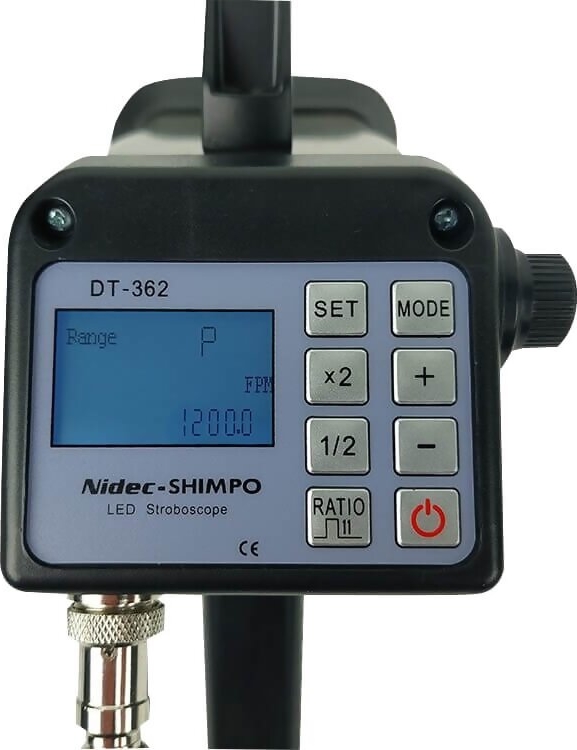 The Shimpo DT-362 AC-Powered LED Stroboscope (Universal Power) is designed for speed and frequency measurements in motion and vibration analysis. It is ideal for predictive and preventive maintenance applications such as: motors, shafts, roto-gravure printing, extruders, blow molding, wire lettering and striping, engraving, pulse jets, water jets, fans, cams, gear teeth, belt inspections, fuel injectors, vibration analysis, spindle spinning, cutting blade timing and sharpness, plus many more in the printing, packaging, textile, automotive, cable, mining, steel, chemical, optical, medical and shipbuilding industries.