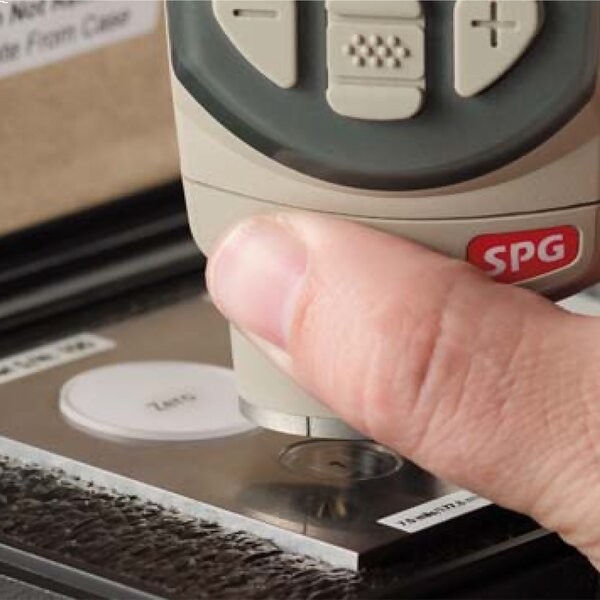 The DeFelsko STDSPG Certified SPG Standard is used to verify the accuracy and operation of surface profile depth micrometers including the PosiTector® SPG and are an important component in fulfilling both ISO and in-house quality control requirements