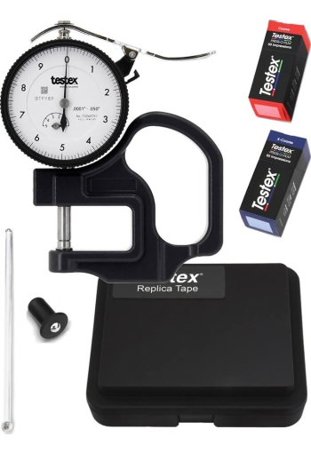 Testex Micrometer Dial Thickness Gages are the only analog gages specifically designed for use with replica tape having the correct accuracy, closing force, anvil/contact point dimensions, and parallelism specifications required for accurate measurement of replica tape.