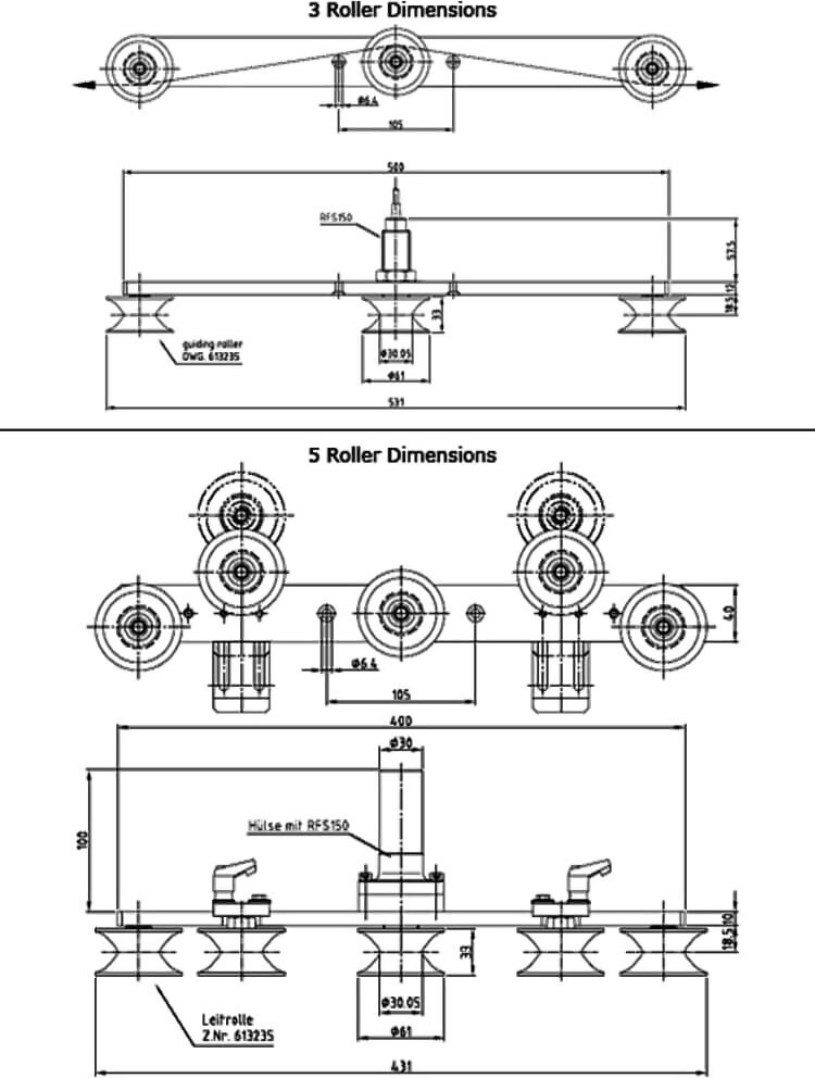 | Guide Rollers | V Grooved, U Grooved or Flat Cylindrical (with or without flanges) |