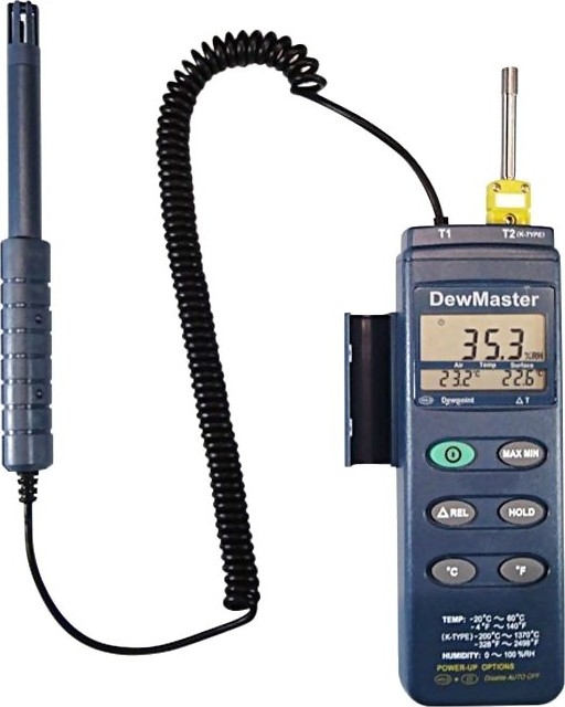 Also known as a hygrometer, thermohygrometer, dewmeter, dew meter, dew point meter, humidity gauge and relative humidity gauge. All are climatic condition monitors.