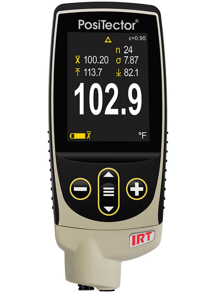 The PosiTector IRT has a larger distance to spot ratio and a button activated laser pointer for precise and accurate surface temperature measurement.