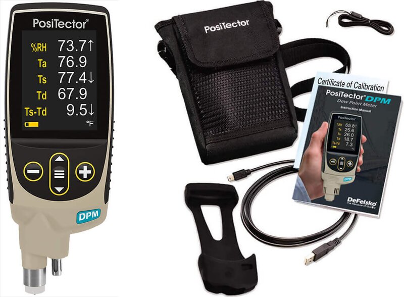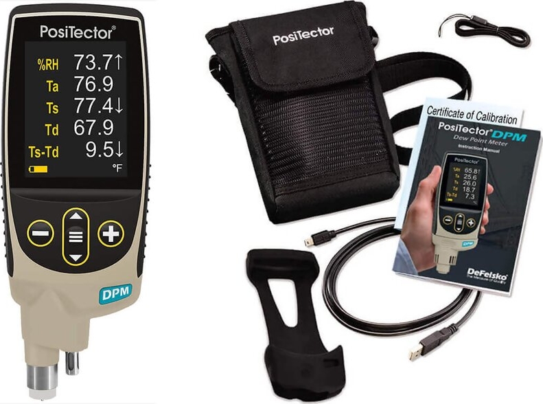 The DeFelsko PosiTector DPM3 Advanced Dew Point Meters Kit includes everything needed for testing: