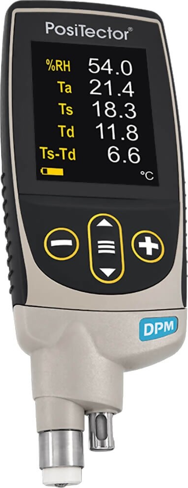The DeFelsko DPM3 PosiTector DPM3 Advanced Dew Point Meters for Environmental Monitoring with PRBDPM Integral Probe measures and records climatic parameters including: Relative humidity, air temperature, surface temperature, dew point temperature and difference between surface and dew point temperatures.