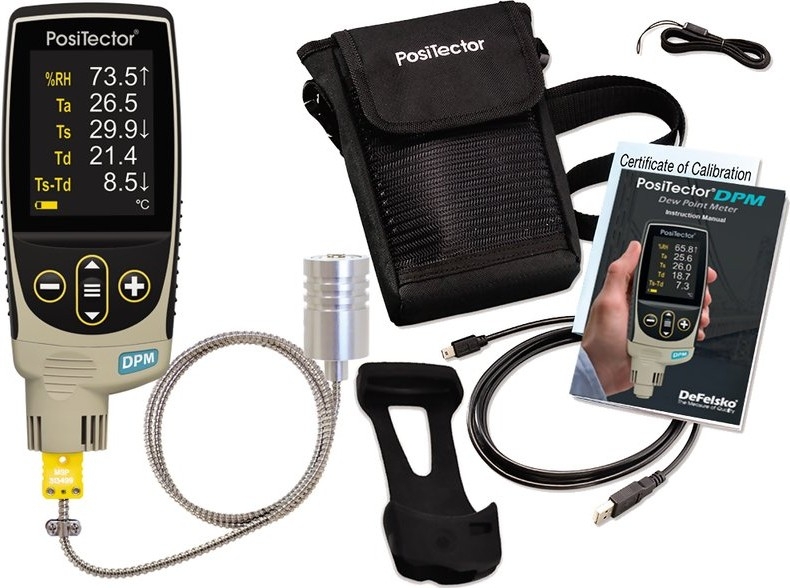 The DeFelsko PosiTector DPMS3 Advanced Dew Point Meters Kit includes everything needed for testing: