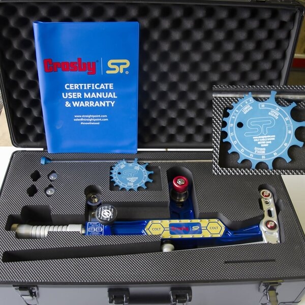 The new StraightPoint COLT Clamp On Line Tensionmeter is designed for fast and accurate measurement of wire rope tensions up to 11,000 lbf / 5000 kgf on cables up to 1" / 25mm diameter. Constructed from aerospace grade aluminum the COLT digital tension meter is lightweight and easy to handle and operates on wires that are already under tension. Once in place it allows the operator to quickly check tension on cables or wire ropes set at any angle.