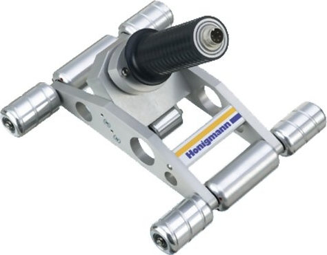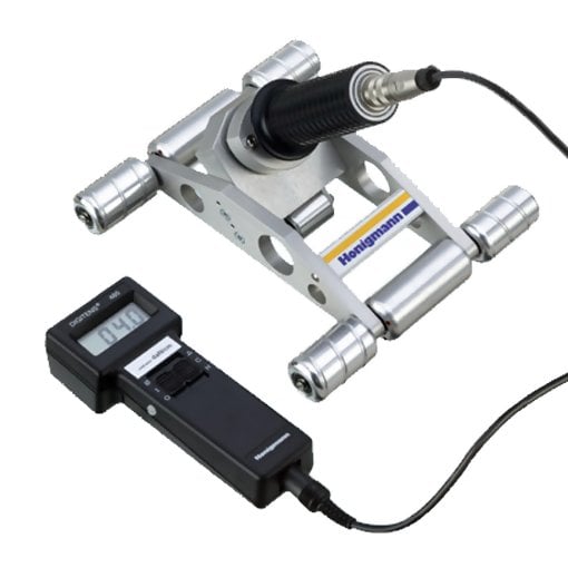 The Honigmann 136-2 Web Tension Meter features a spring-loaded handle, which eliminates errors, caused by uneven pressure applied by operators. It makes taking measurements as simple as pressing the sensor gently on the web until the handle reached the mechanical stop. Ball-bearing mounted rollers support the measurement head at speeds up to 1000 m/min. For higher speeds, a low friction, ceramic-coated stabilizing plate is offered.