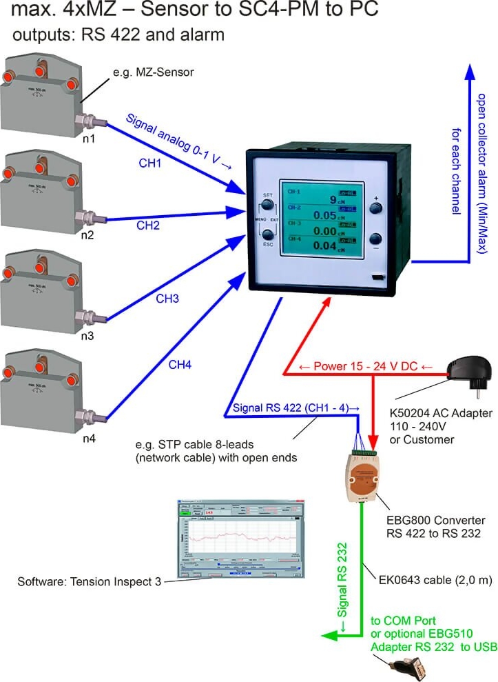 | SC4-PM | Sensors with amplifier (0 – 1 V) | USB, RS 422, open collector |