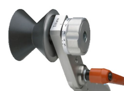 The material threading pattern (refer to illustration below) insures easy material acquisition and good tactile feedback allowing for excellent repeatability between measurements as well as between different users.