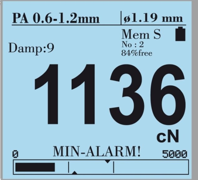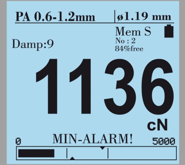 - Large, backlight LCD-display with 3 user-selected display modes: Large-numeric, Numeric with Bar Graph, Numeric with Trend Graph (tension vs time)