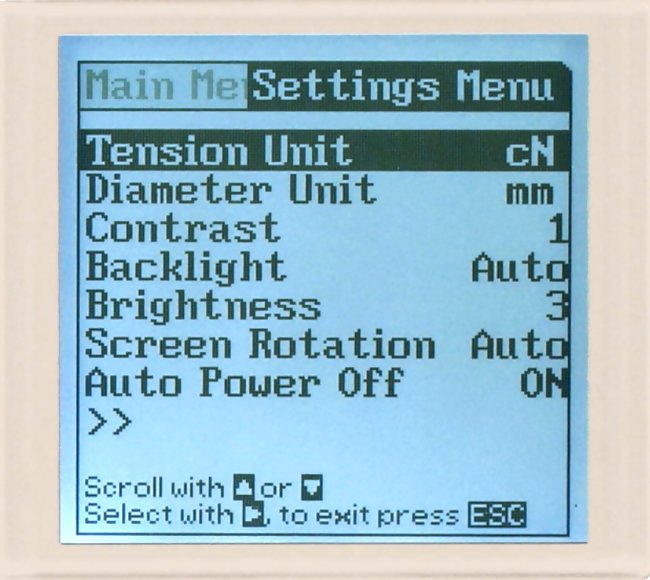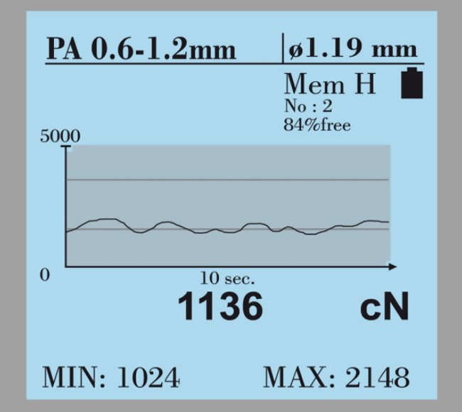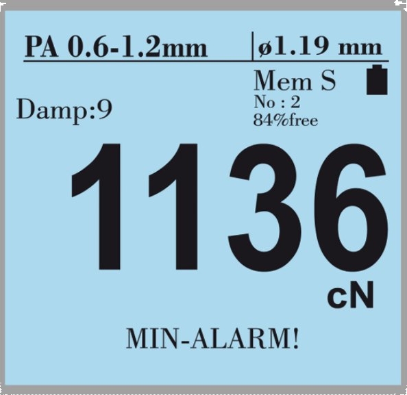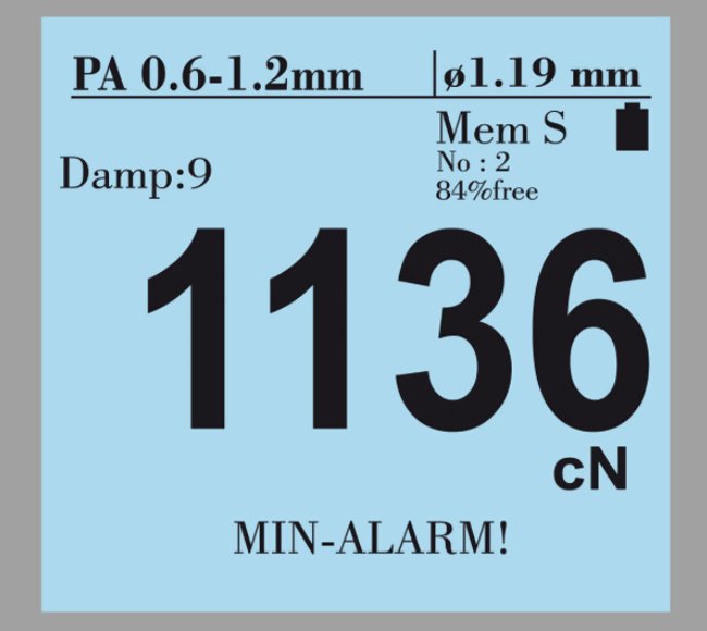 | Measuring units | Force (switchable): cN, daN, g, kg, N, lb Thickness (switchable): mm, inch |