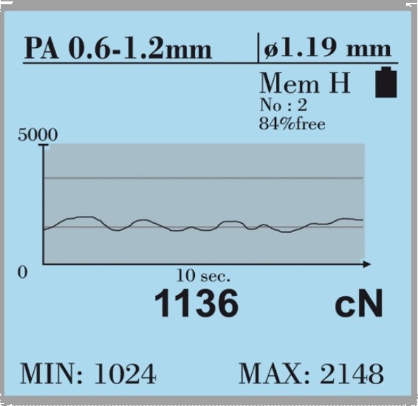 | 3 different displays | Numeric, Numeric with graph (time-tension), X-Y-diagram |