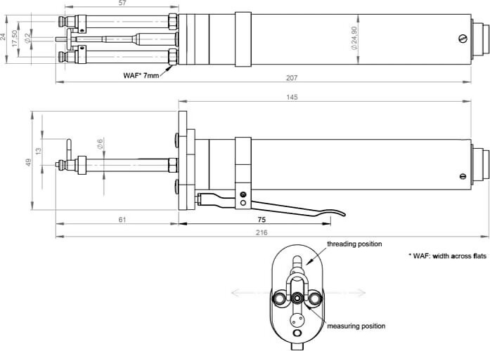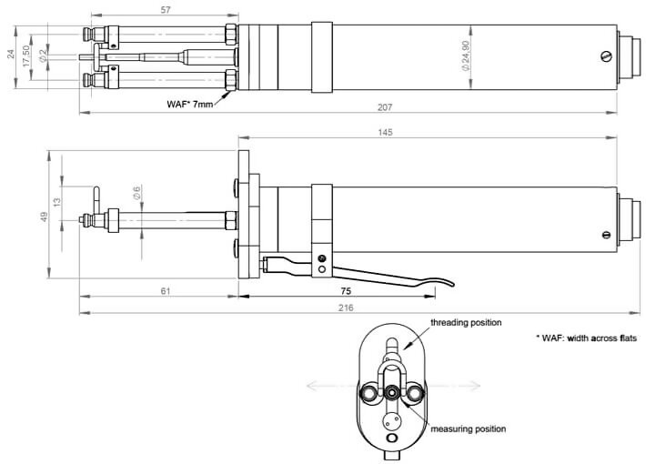 - Special clip type lever for safe and comfortable threading even at high temperatures at the measuring location.