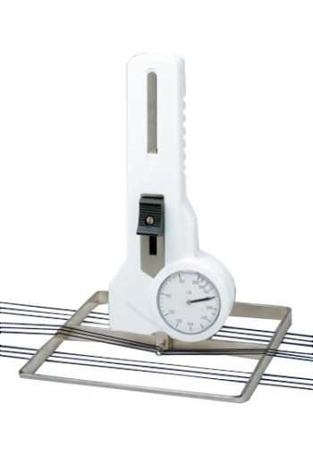 A reference frame makes it easy to scoop up the selected number of ends for measurement and keeps the unit perpendicular while it rests on the warp. K10, K30 & EX ranges are supplied with a 10 mm sensing pin. For the 200 and 500 range codes select either a 17 or 34 mm sensing pin