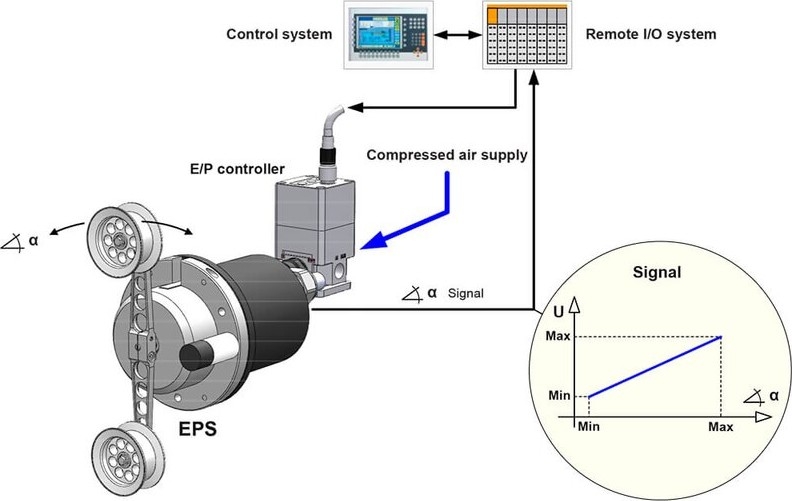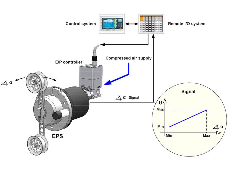 EPS is a control dancer and used for closed-loop tension control on winding of endless material. It is a considered and "active" dancer control system. EPS is operated as an electrically controlled P/F actuator providing a large range of adjustment for the user-set desired tension level The position of the dancer is measured by means of a rotary encoder, giving a standard output signal specially-designed to be able to maintain precise tension control even under high-dynamic speed variations |
