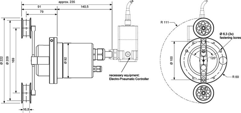 - A torque, which acts on the dancer, is generated electropneumatically.