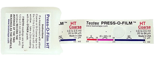 Testex Press-O-Film replica tape is available in a variety of thicknesses to facilitate profile measurement in differing ranges:
