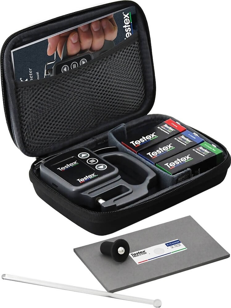 The Testex RTKIT Digital Micrometer Kit Thickness Gage includes everything required to measure the surface profile using replica tape.
